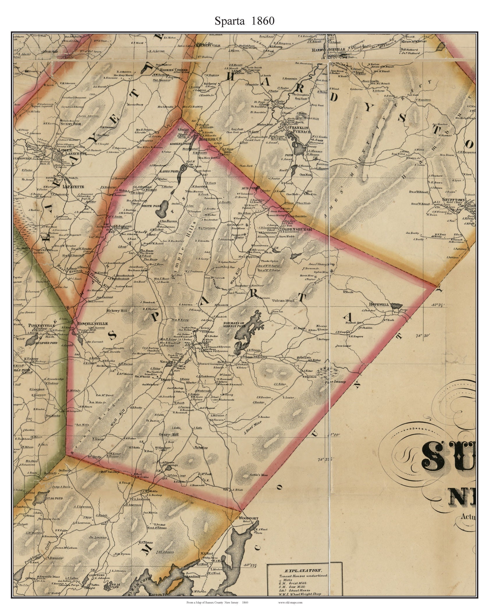 Sparta 1860 Old Town Map With Homeowner Names Hopewell Ogdensburg