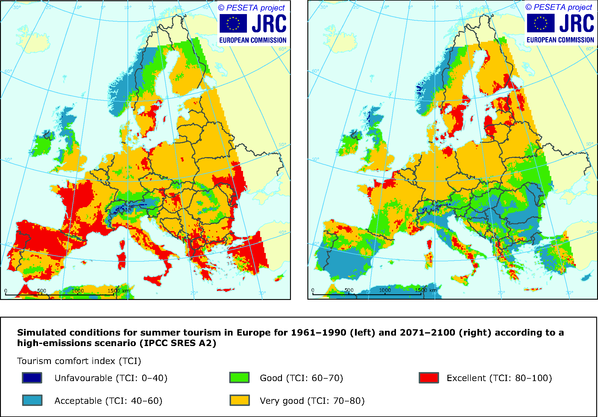 Modelled conditions for summer tourism in Europe for 1961–1990 and
